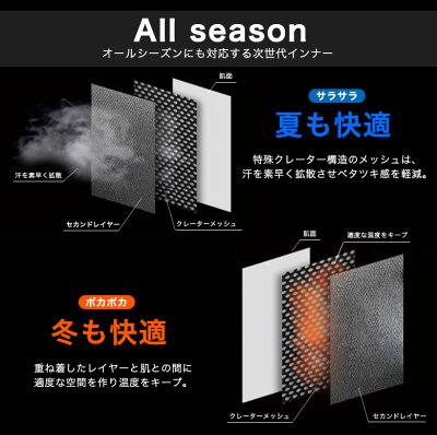 ・特殊クレーター構造のメッシュで汗の拡散と肌のべたつきを軽減。